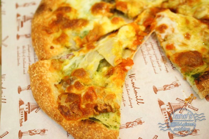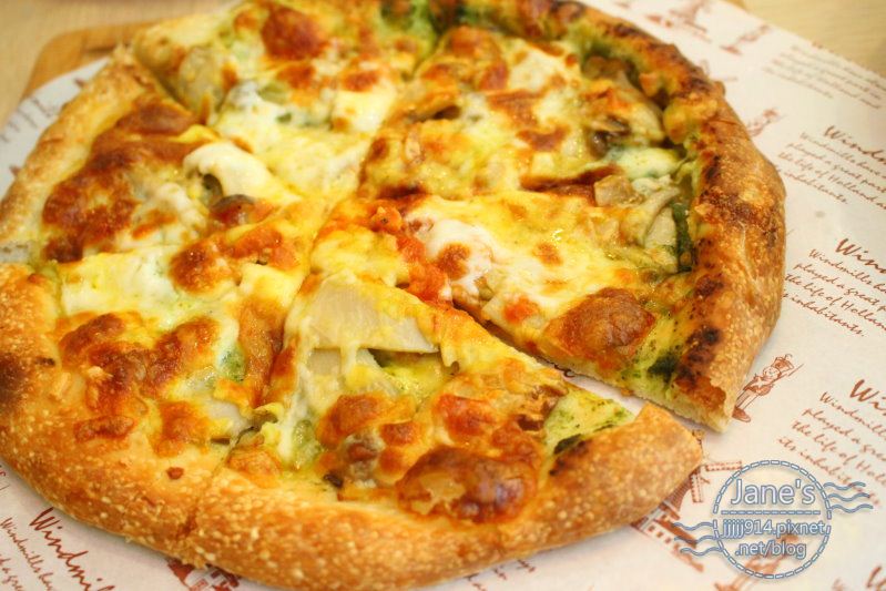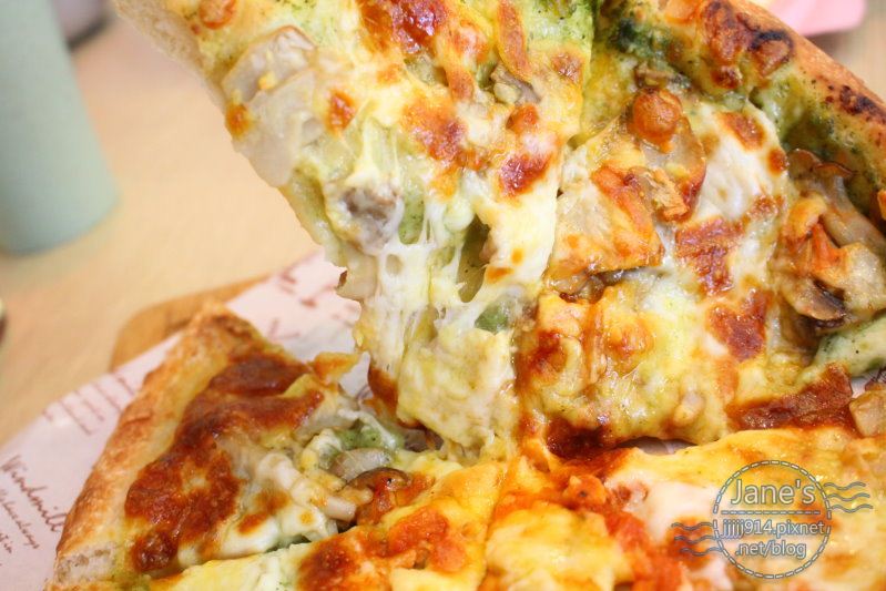 青醬野菇披薩:餅皮脆又好吃的PIZZA,必點必點啦!!