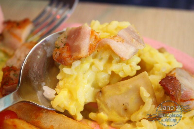 南瓜燉飯…南瓜已經全煮軟,融合在燉飯裡頭了,