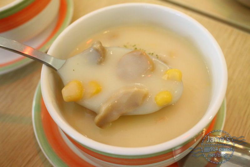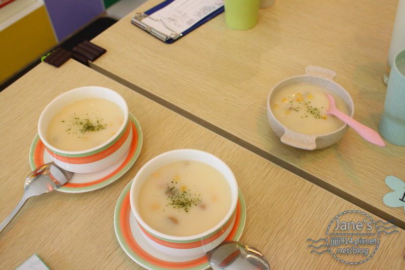 套餐附的玉米濃湯,大人大碗的,小孩小碗的…