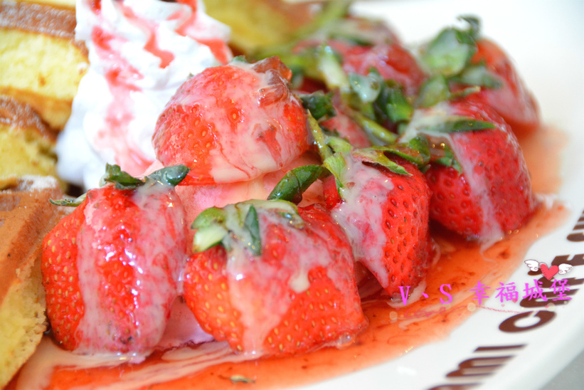 一上桌就可以聞到那香濃的鬆餅蛋香,草莓的果香,甜蜜蜜的味道猶如熱戀一樣。