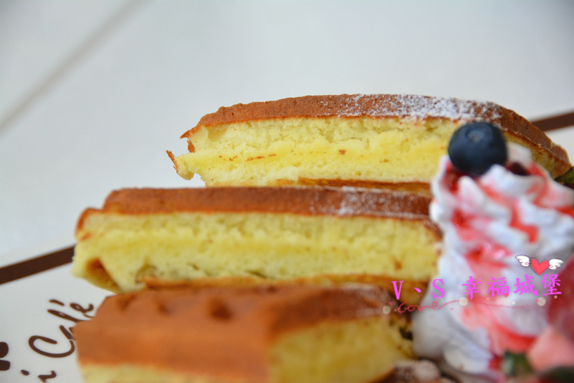 厚度適中的鬆餅,口感軟綿Q彈,單吃不會過乾,沾上鮮奶油、或冰淇淋、或草莓醬,吃起來都是很棒的滋味。
