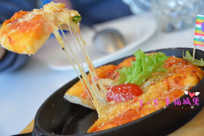 一口咬下,可以感受到那Q彈有咬勁的餅皮,還有那豐富的海鮮,最重要是那拉絲的起司, 只可惜這披薩小了點,讓我吃的不過癮。