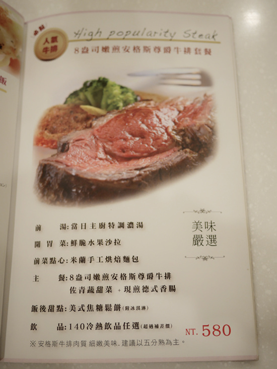 8盎司嫩煎安格斯尊爵牛排套餐 NT.580