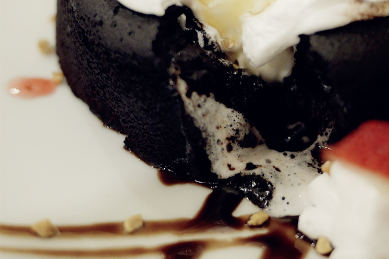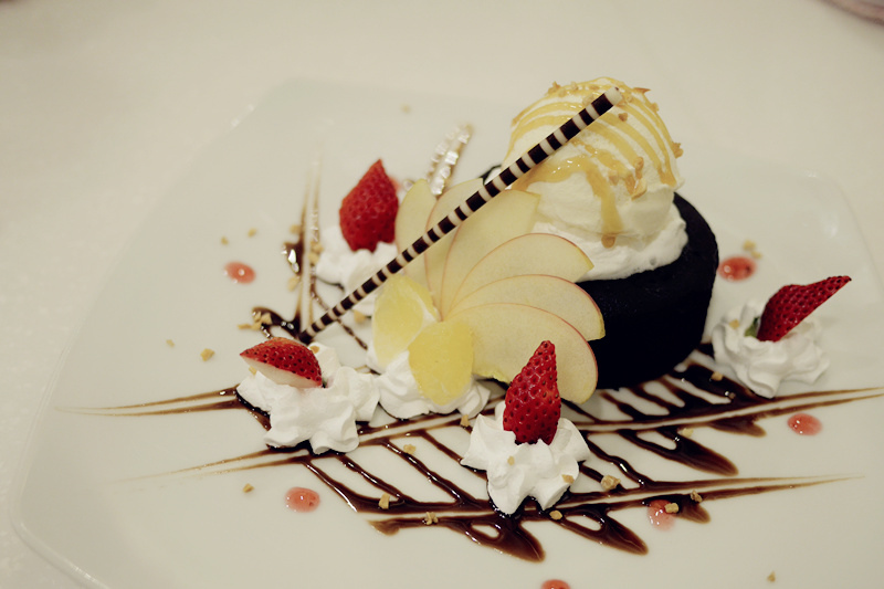這道可是店內的人氣甜點唷!鬆軟的布朗泥切開來就會流出熱熱的巧克力,苦甜的滋味還不賴,味道濃郁但不會很膩。