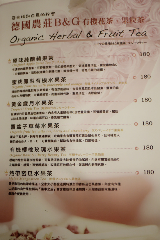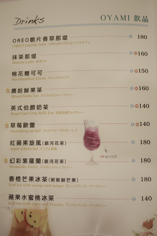 最後就是飲料的部分了,Oyami café的飲料選擇超多,有咖啡、花草茶、還有一些特色冷飲等等。