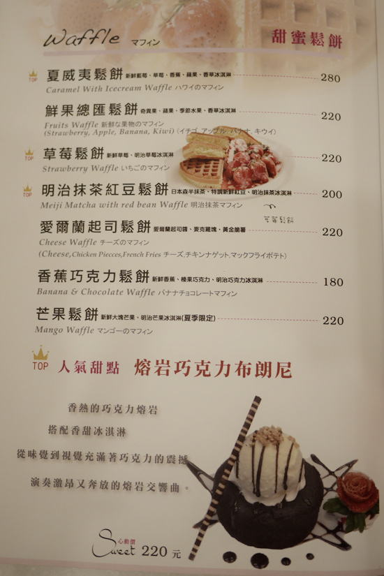 甜點的部分選擇也很豐富,光是鬆餅就有7種…