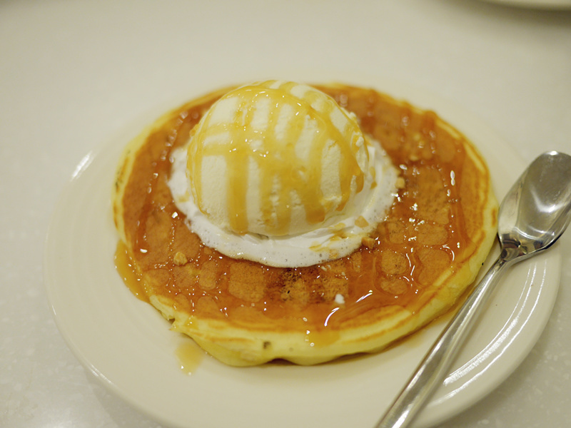 再來這份美式焦糖鬆餅則是我的牛排套餐附的甜點,它是那種比較軟的鬆餅,上面還附一球香草冰淇淋。