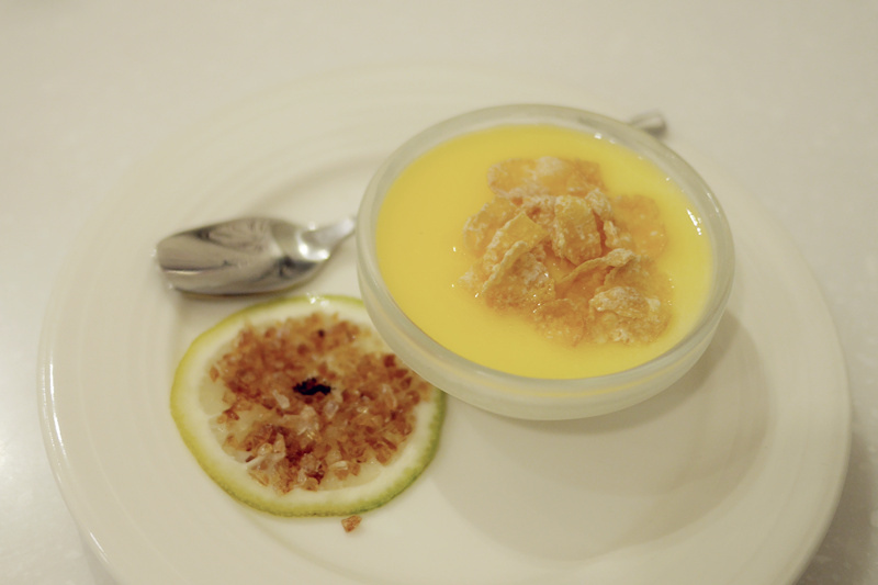 另外這份芒果奶酪,也是套餐附的甜點,就是一般的芒果奶酪,但我很喜歡它的搭法,它旁邊有附薄薄的檸檬片,上面灑了很多紅糖,老闆說這個要包起來一口吃下去,酸酸甜甜的超好吃。