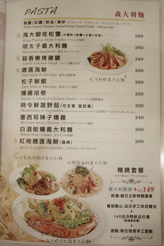 總匯海鮮義大利麵 NT.260(套餐另加NT.149)