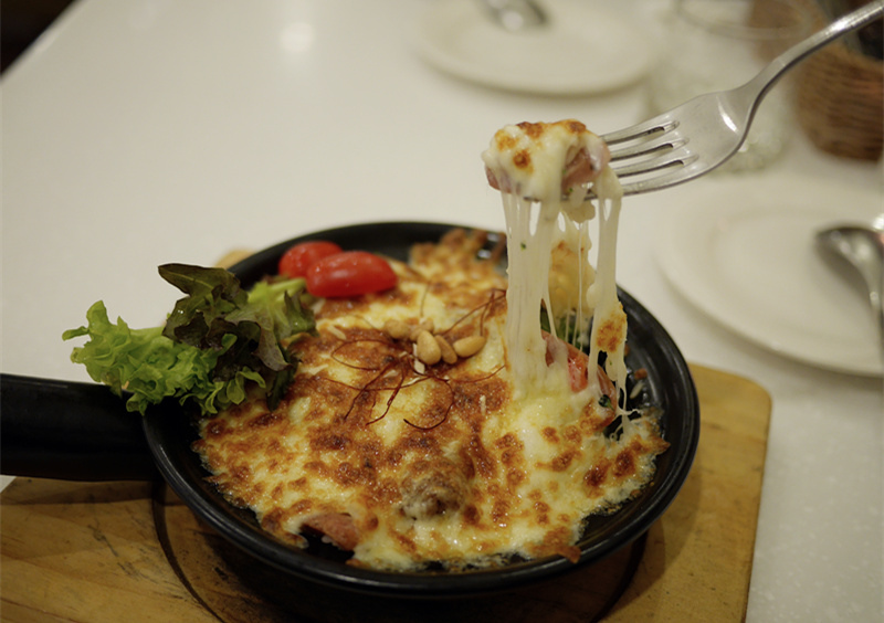 這道我姊覺得超好吃,但因為我本身重口味,雖然焗烤很香,雞腿也很嫩,但蒜香的味道稍微不入味,有點可惜。