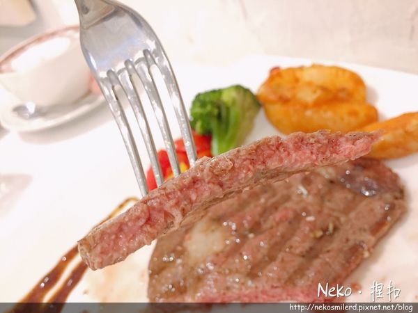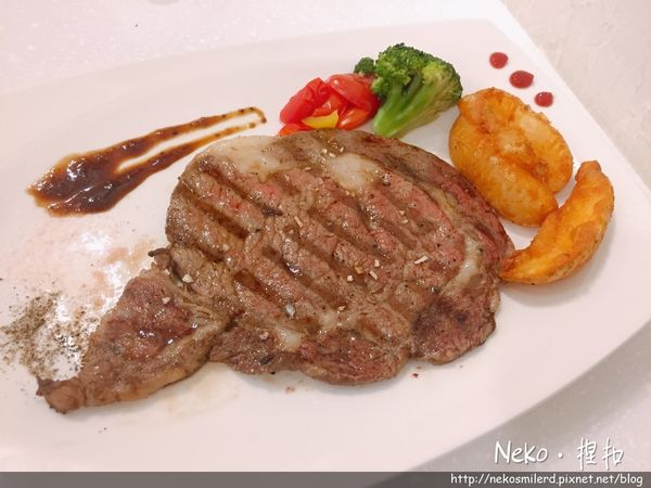 菜單上非常吸引人的牛排套餐~牛排屬於薄片牛排,店家推薦嚐試五分熟最可以吃出肉質風味