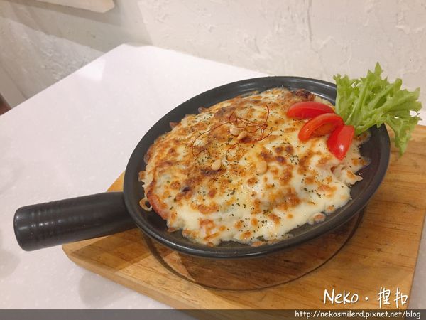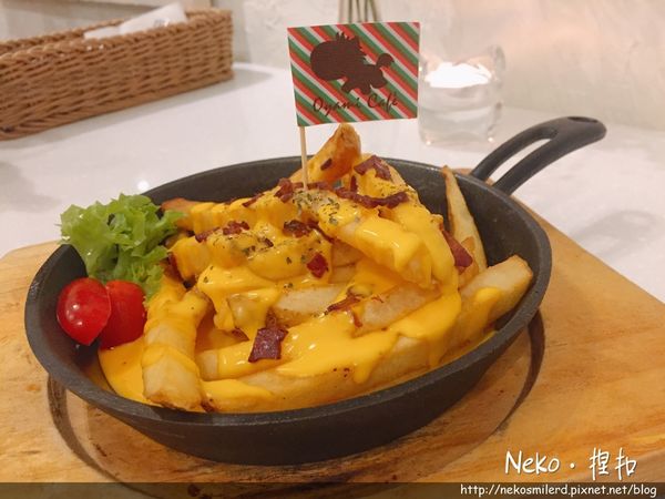 淋上起司醬和培根碎的炸馬鈴薯,綿密薯條伴著淡淡的起司香讓人一直想到吃起司馬鈴薯(因為起司醬一樣嗎XD~上面還有一支 Oyami cafe 可愛小旗子