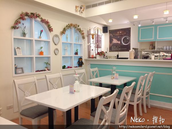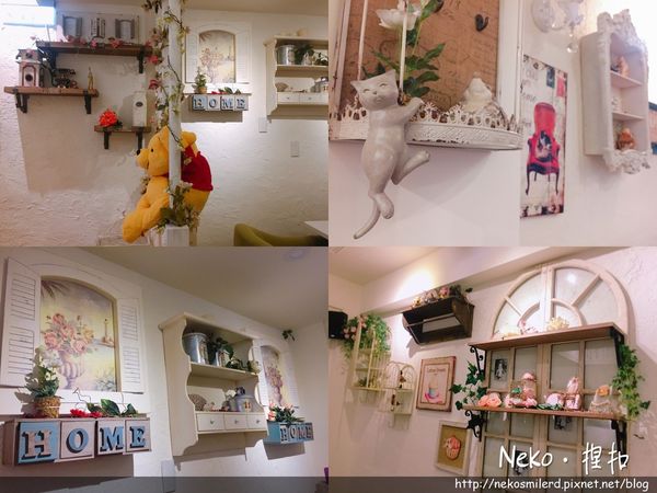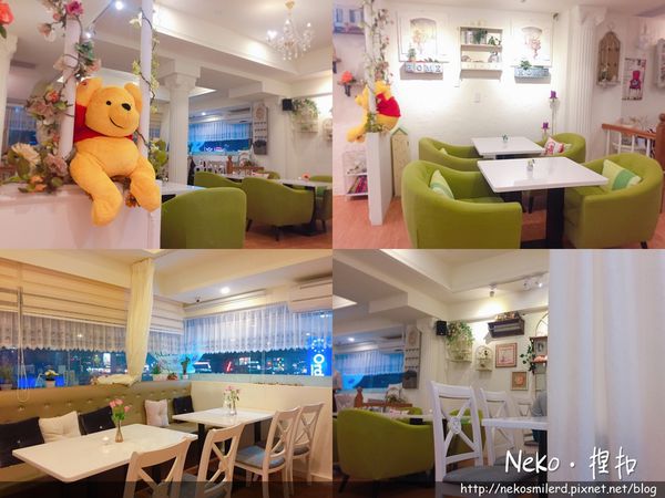一上2樓可愛的維尼就笑臉迎接著~看到維尼背影不禁會心一笑(該減肥囉維尼XDD樓上則是綠色系沙發椅和部分木椅組合,看起來非常舒適~部分桌與桌之間還可以拉起白色布簾(上圖下面兩張)會變得比較有隱私感~很是和姊妹說秘密聊心事唷!剛到時二樓可是高朋滿座,因為我們太會聊了幾乎快營業結束才走才能拍到這樣無人的景象