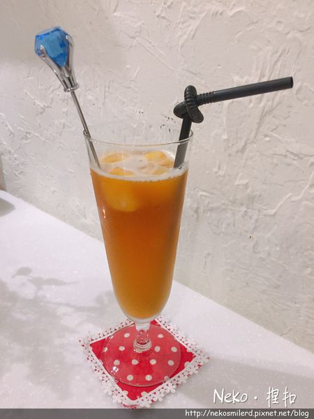融合柳橙香味和芒果香的一款水果茶,茶香和果香搭配非常順口,而且是用冷凍的芒果肉當冰塊唷!夏天來吃一錠特別消暑!