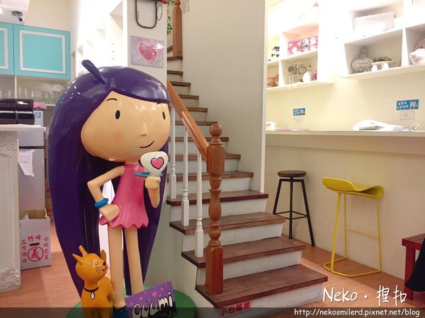 樓梯旁的女孩公仔,原來還有隻貓咪相伴呢,親切的招呼客人上樓