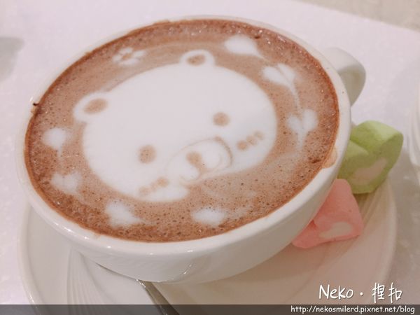 可可上面有著可愛的小熊拉花~只要是有加牛奶的幾乎都能做拉花唷!這麼可愛都要捨不得喝了,不另外加糖的可可甜度剛剛好