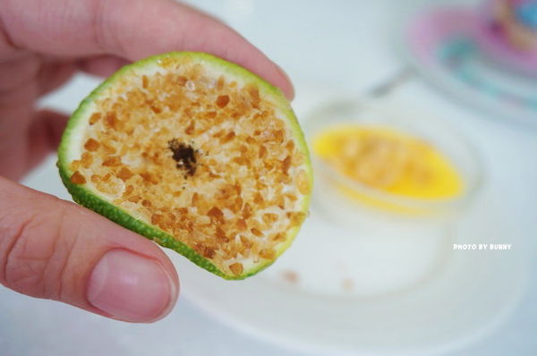 還有附去油解膩的檸檬片上頭佐咖啡糖粒