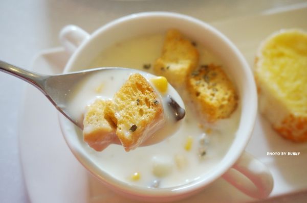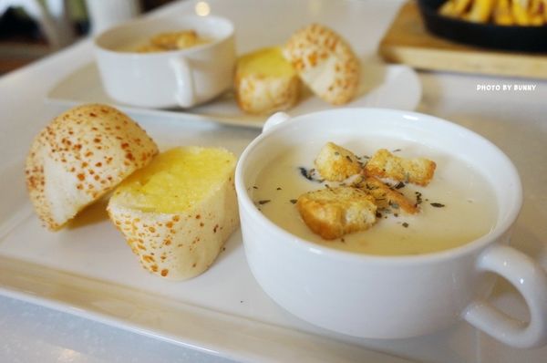 先送上的當日主廚特調濃湯及法式手工烘焙麵包