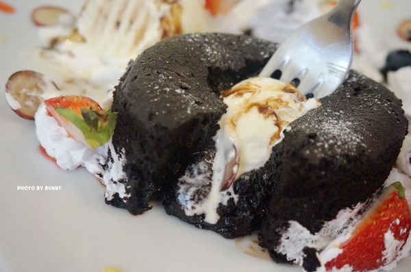 趁熱切下 巧克力岩漿緩緩流出 實在誘人