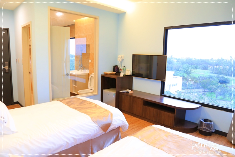 penny這次住宿的房間內雖然不大,但是有一面大大的面海的窗戶還有一個大陽台,躺在床上就可以看日出也太幸福了。床的軟硬度適中,枕頭也很好睡,還貼心地準備了軟硬兩款枕頭,可以倚靠在床上舒適的看電視和看日出。