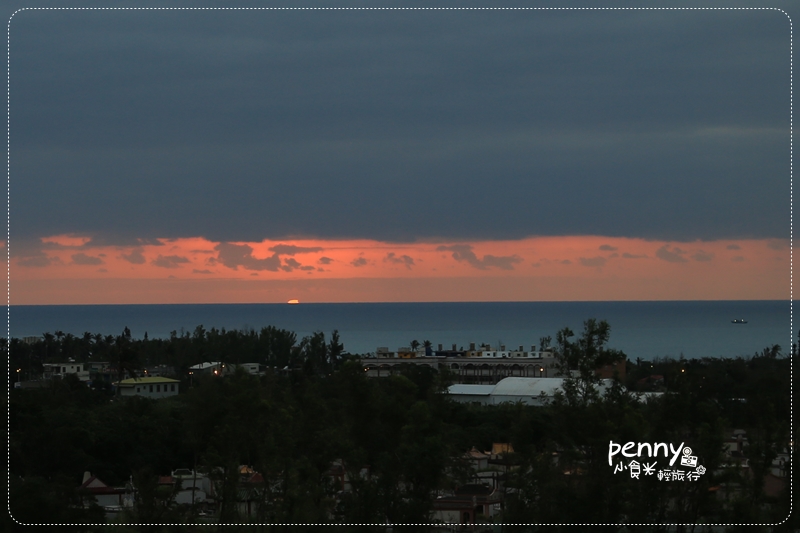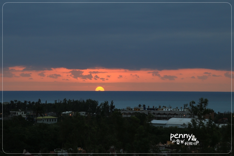 新城太魯閣車站,是花東鐵路效能提升計畫中,四個結合藝術的車站之一,也是第一個完工的藝術車站,將藝術美學融入公共空間,可以形塑台灣的觀光品牌形象,提升國際觀光競爭力。 回到飯店,舒服的泡個澡,傍晚下起了小雨,希望不要影響隔日看日出的天氣。 星晟棧舒服的被褥果然讓penny一夜好眠,睡前查了第二天的日出時刻,特意的不拉窗簾,想看太陽從太平洋上升起的美景,不到6點就醒了,雖然在床上就可以看日出,但既然醒了還是上飯店頂樓觀賞,可以看得更高更遠。 雖然雲層偏厚,但接近海面上有一些空隙,太陽果然在訂好的時間準時出現。