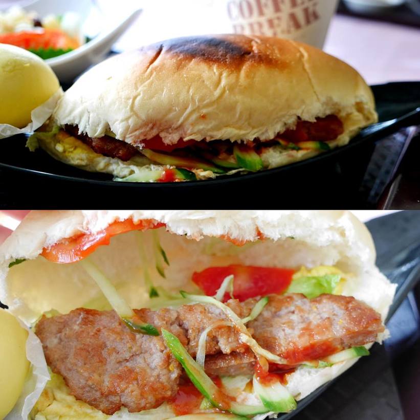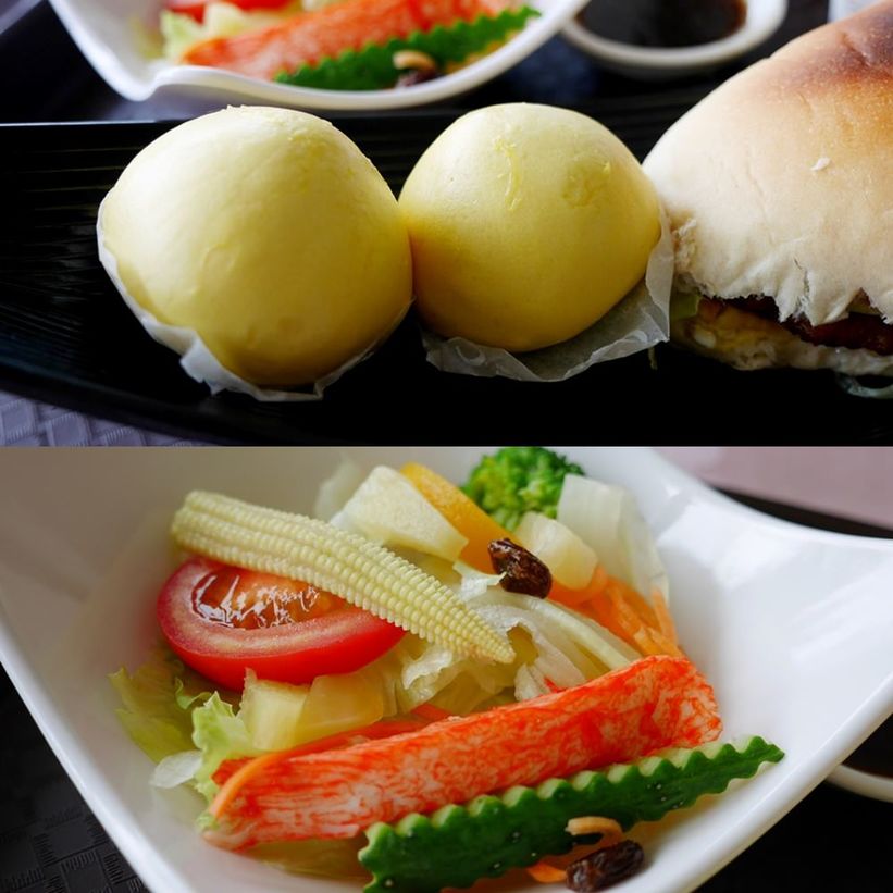 大碗生菜沙拉+漢堡+豆沙包2個+米漿