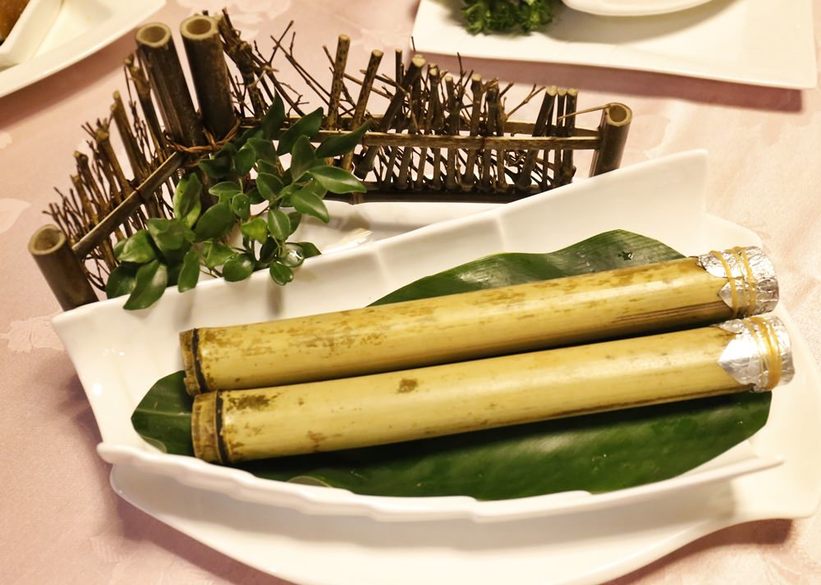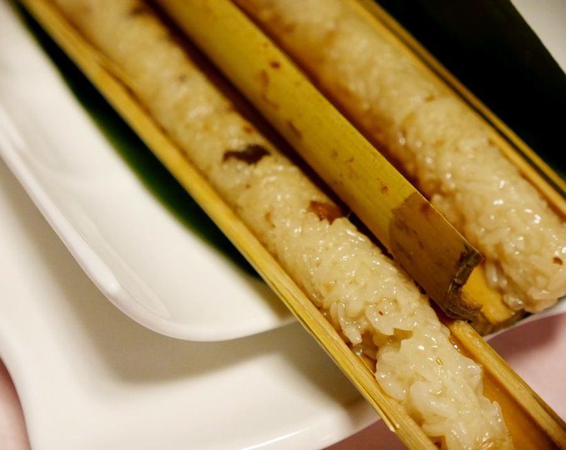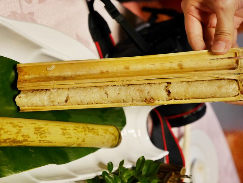 打開是竹香四溢的竹筒飯