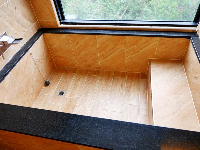 浴缸內是漸進式階梯