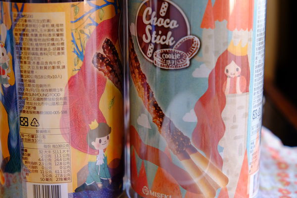 包裝上有位夢幻小公主是原味巧克力。可愛小王子包裝則是花生巧克力口味。長圓筒的包裝,一盒10條。獨立的包裝讓食用不髒手,也不需擔心太多分量而吃不完,有巧克力餅乾會潮濕的困擾。
