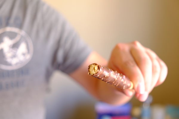 圓筒蓋子上有使用期限喔!打開密封的圓筒,拿出啾可巧拿棒。