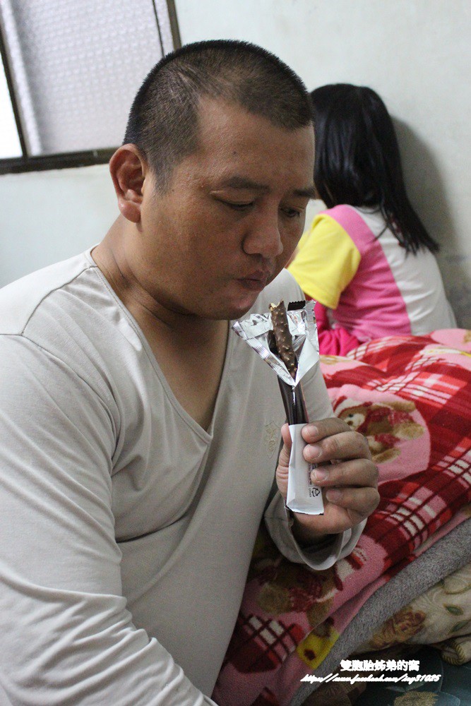 拔拔則是超開心地可以邊吃最愛MISEKI啾可巧拿棒的花生