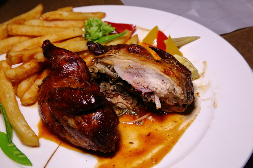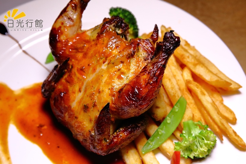 排餐中我最喜歡爐烤春雞,雞皮炸烤得香脆,肉質鬆軟、輕鬆去骨