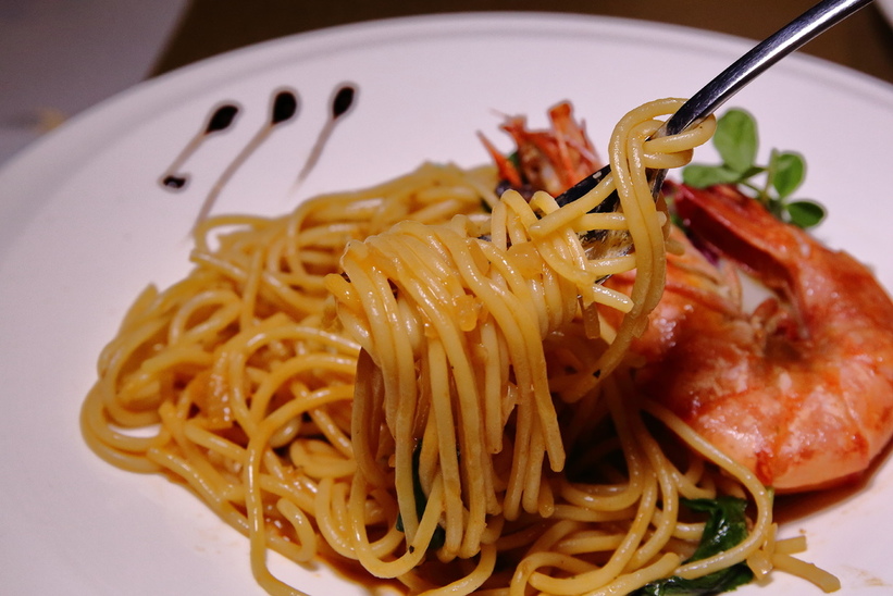 這道麵可說是集海鮮鮮甜滋味大成於一盤之中啊,吸附了濃郁醬汁,每一根麵條的口感 都超夠味!
