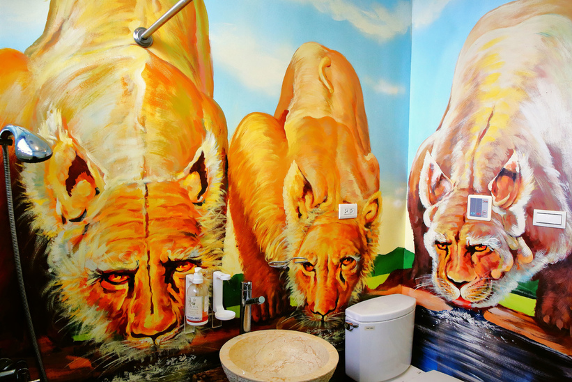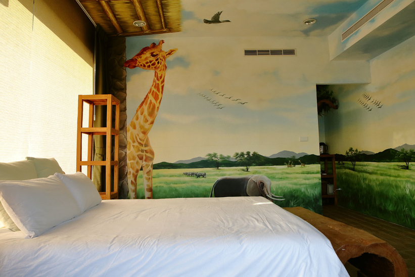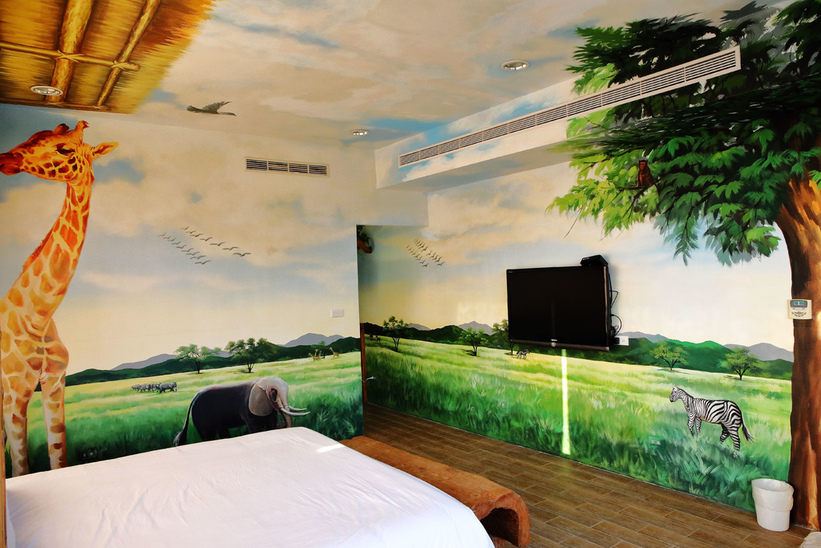 這間就是我們今天的房間,整個房間牆面都有繽紛彩繪喔