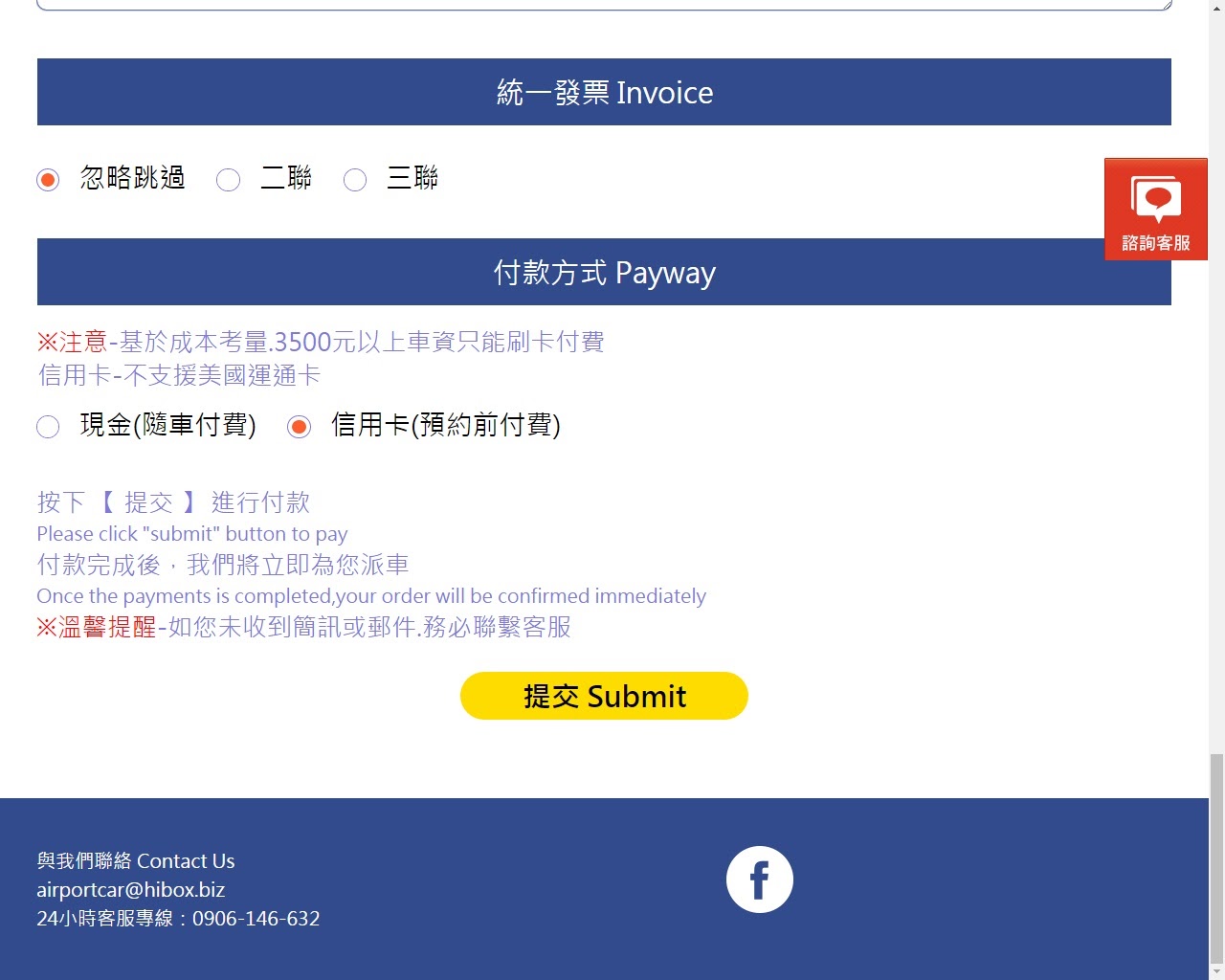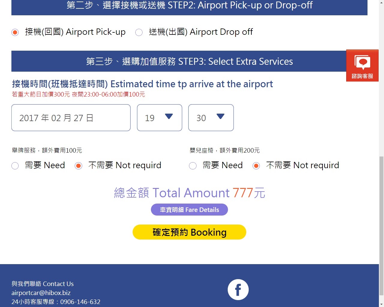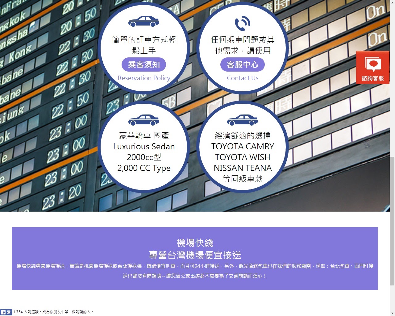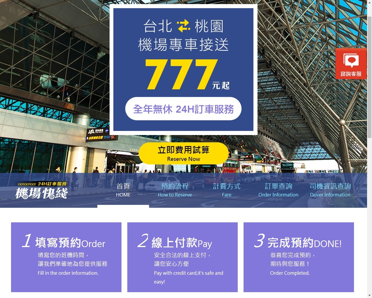 《機場快綫-網頁自動訂車系統》主要提供桃園機場的機場接送服務,而且是24小時皆可接送,全年無休!接機與送機都有,重點是~價格很優惠!話說之前小麻雀和海帶有次從桃園機場臨時搭排班的計程車回台北,一趟就要1200元,而且開後車廂放行李還要加收費用,真是太誇張啦!