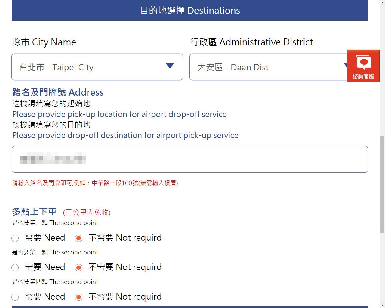 ▲先填入目的地位址,接送的範圍全台皆有,不限地區喔。