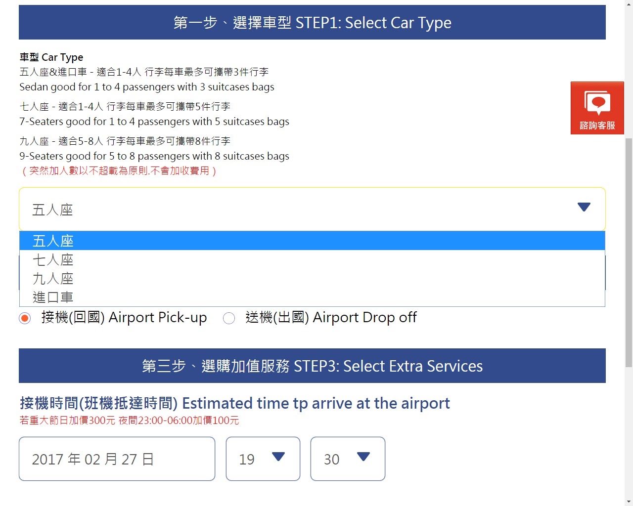 ▲《機場快綫-網頁自動訂車系統》一目了然,操作簡單又方便。