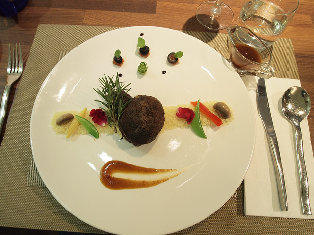 That day the main meal was Grilled Tree Hedgehog Steak (with Cream Sauce, Assorted Vegetables and Couscous). What’s amazing! Tasted like steak and had a similar texture. It looked very appetizing.