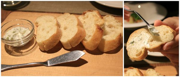 所有的套餐都以麵包起頭,剛上桌的切片麵包溫熱,原始的麵香味濃厚,放冷後歐式麵包帶口感的嚼勁顯現。