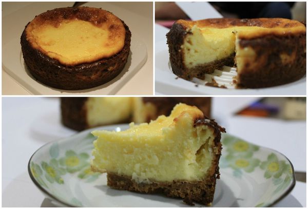 Raw cheese cake is made with smooth cheese, baked cheese cake has more flour, eggs and butter taste. And there is bittersweet caramel on the surface layer, so amazing.