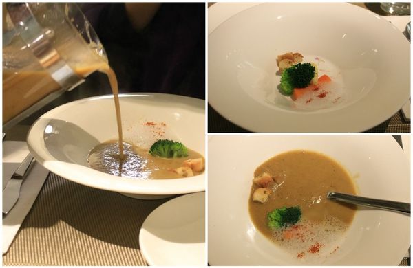 盤內的蔬菜應該都只有水煮過,保留食材的原味;濃湯則是用栗子熬煮,咬不到任何固體但味道十分濃郁。