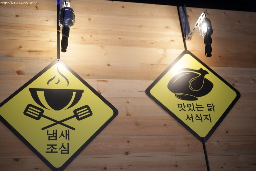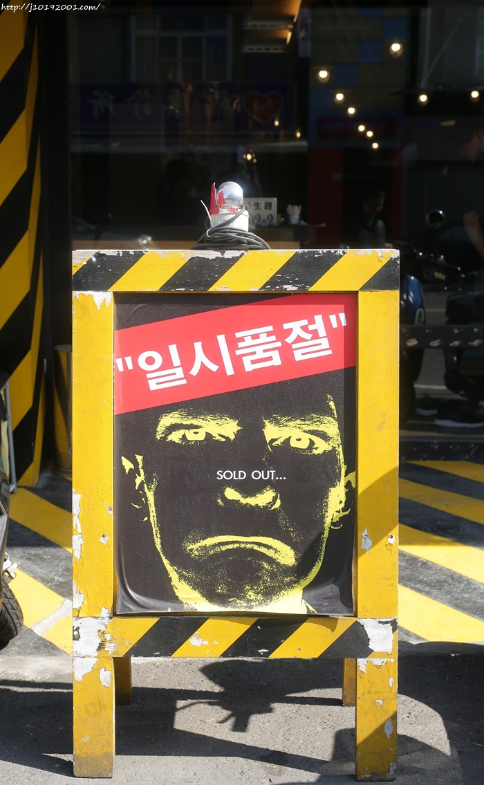 三角警示牌上面是韓文