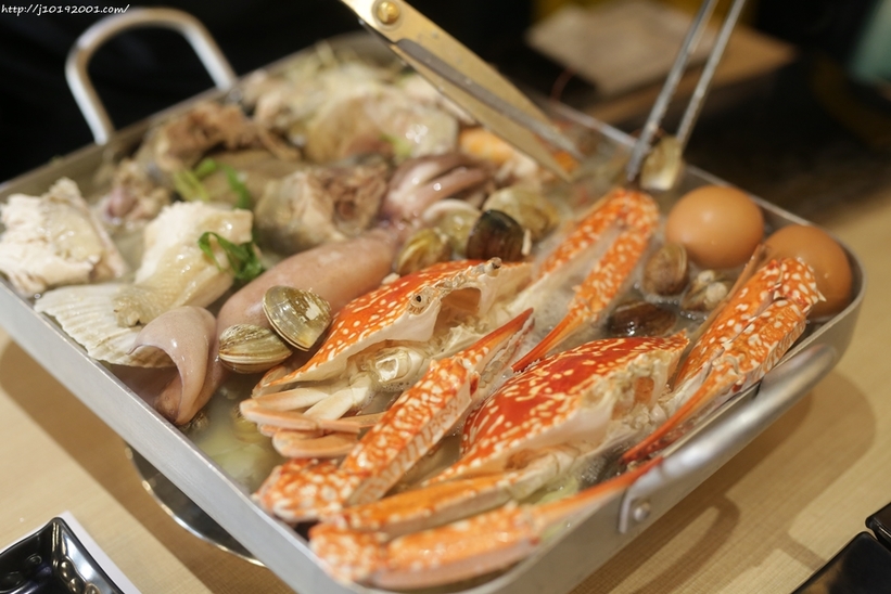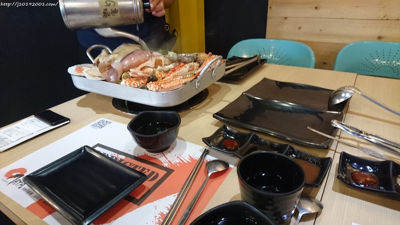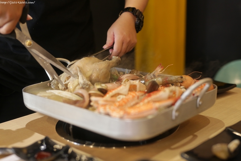 像我和小蛋冬天來吃釜山巨無霸海鮮盆,當天服務的店員有空的話也會幫忙剪,超棒的(ゝ∀・)