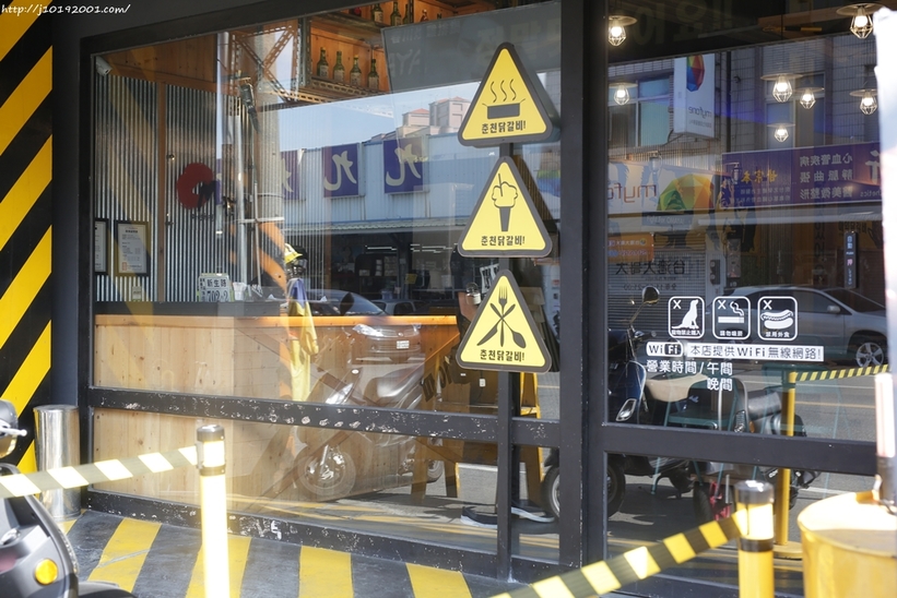 店面的黃黑色工業風搭配交管假人也相當有特色!