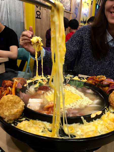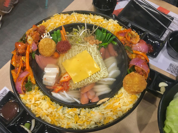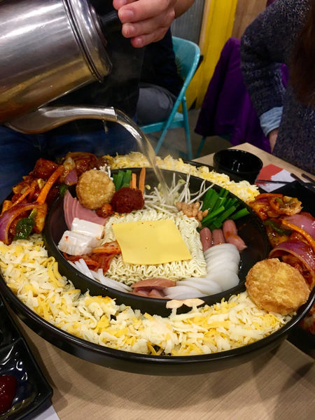 中間的湯就是部隊鍋,也是一鍋料滿滿~但希望泡菜可以再多放點的呀!!
