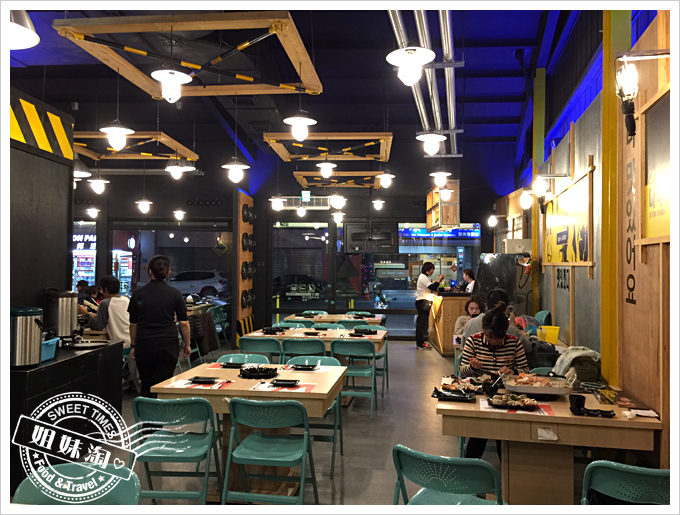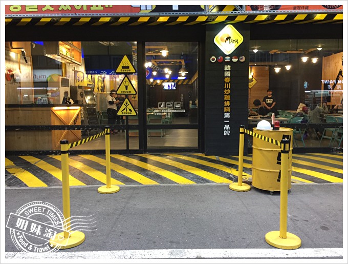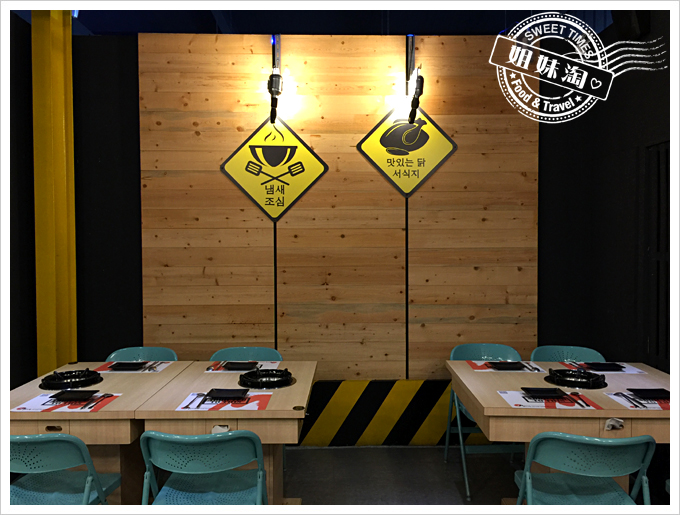 汽油桶、警示線、交通標誌、圓罩黃燈、金屬管、銀色波浪瓦,以木條製作簡單框架,圍繞主題黃黑色系激盪出來的爆發力,前衛設計又結合韓式音樂潮流。