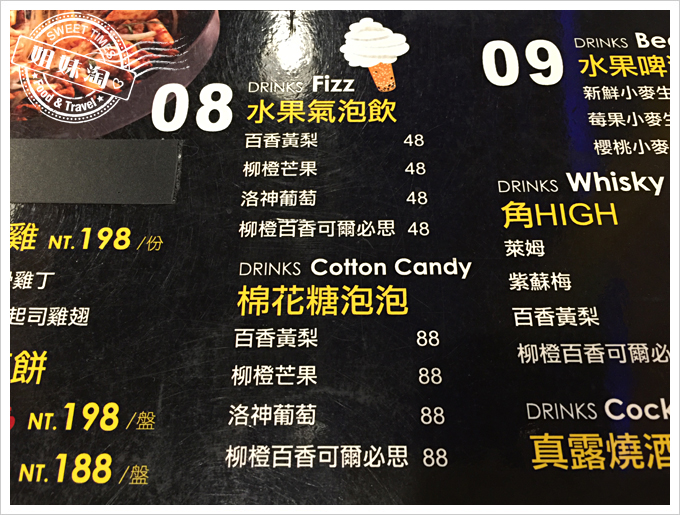 吃飽之後,接下來飲品的選擇也很多樣,棉花糖泡泡、韓國瑪格麗小米酒、角High、水果啤酒等,看到非常吸引我的一種...棉花糖泡泡是蝦毀?立馬點兩杯百香黃梨與洛神葡萄來試試。