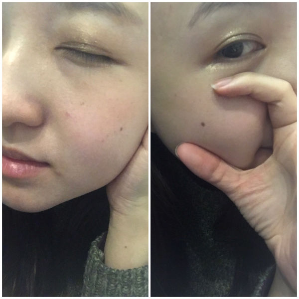 不過仔細看眼周還是多少有一點點眼影了亮粉, 不過大致上顏色是沒有了, 可能全部卸乾淨還是需要按摩久一點吧~