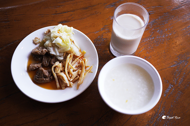 瑋爸則是來些地瓜粥和配料再搭上一杯豆漿~