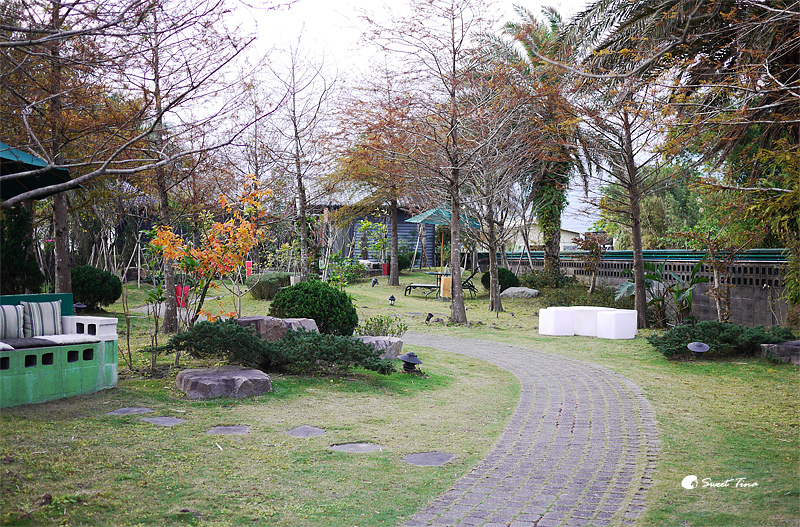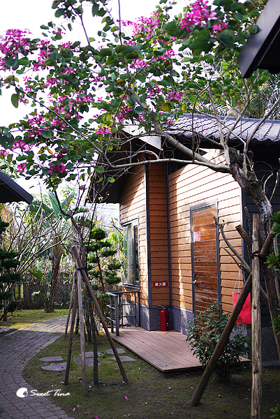 這小花園又是通往哪呢,走著走著就看到小木屋啦,一楝楝成列的小木屋感覺真的很棒,雖然是星期五但還是不少情侶入住呢!
